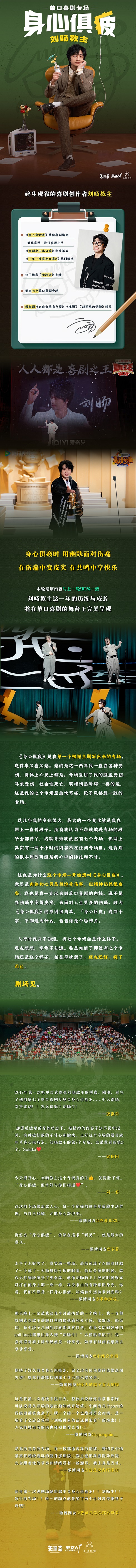 单立人喜剧是一家专注喜剧内容研发制作与推广的公司,以创作优质喜剧内容为核心,制作类型丰富的喜剧现场演出和线上产品,希望每个人都能通过幽默的方式化解生活中的不快。2017 年成立至今,推出《谐星聊天会》、《无聊斋》、《一言不合》等播客产品,也是《一年一度喜剧大赛》的首席内容战略合作伙伴。线下演出方面,也以提供优质喜剧内容为出发点,成功制作喜剧演出场次1000+ ,票房突出、口碑优异。全国有近 30 个城市的数十万观众在现场感受到了单口喜剧、sketch、漫才、即兴喜剧、默剧等诸多喜剧艺术形式的魅力。