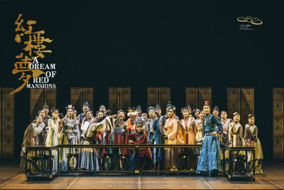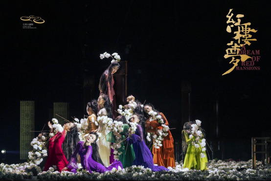 江苏大剧院原创民族舞剧《红楼梦》以贾宝玉与林黛玉、薛宝钗的爱情为主线,在秉承尊重原著的原则同时,邀请了年轻且具有丰富想象力和创新追求的优秀艺术家为其注入独特的现代审美和意义。视觉上借鉴明清古画的美学特质,旨在展现端庄古雅的舞蹈群像;多处运用了富有中国特色的古典符号,既是对中华民族优秀传统文化的致敬,也以年轻一代视角对民族文学经典进行重新演绎。