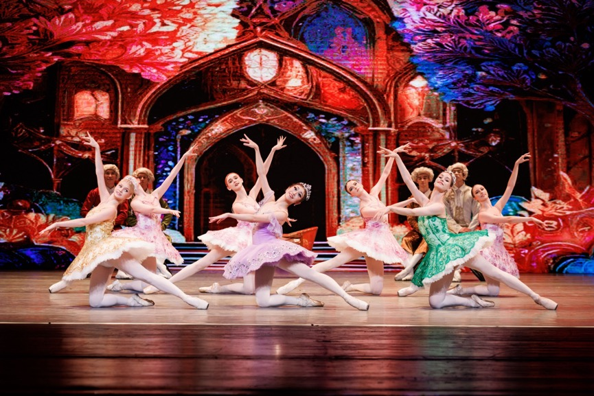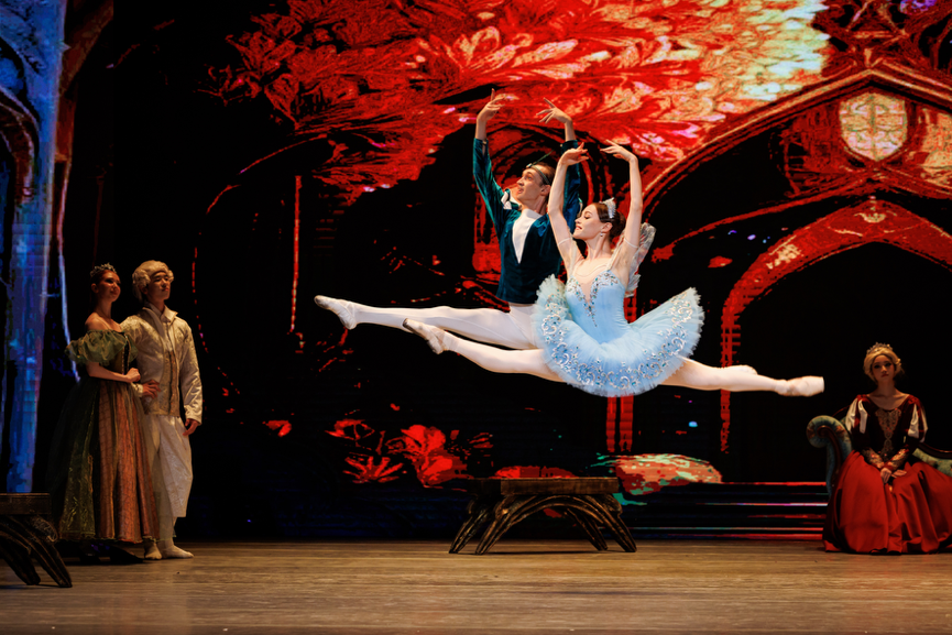 以高难度技巧和优雅动作著称,有许多经典舞段,如《玫瑰慢板》《婚礼双人舞》《蓝鸟双人舞》等,充分展示了芭蕾艺术的魅力。