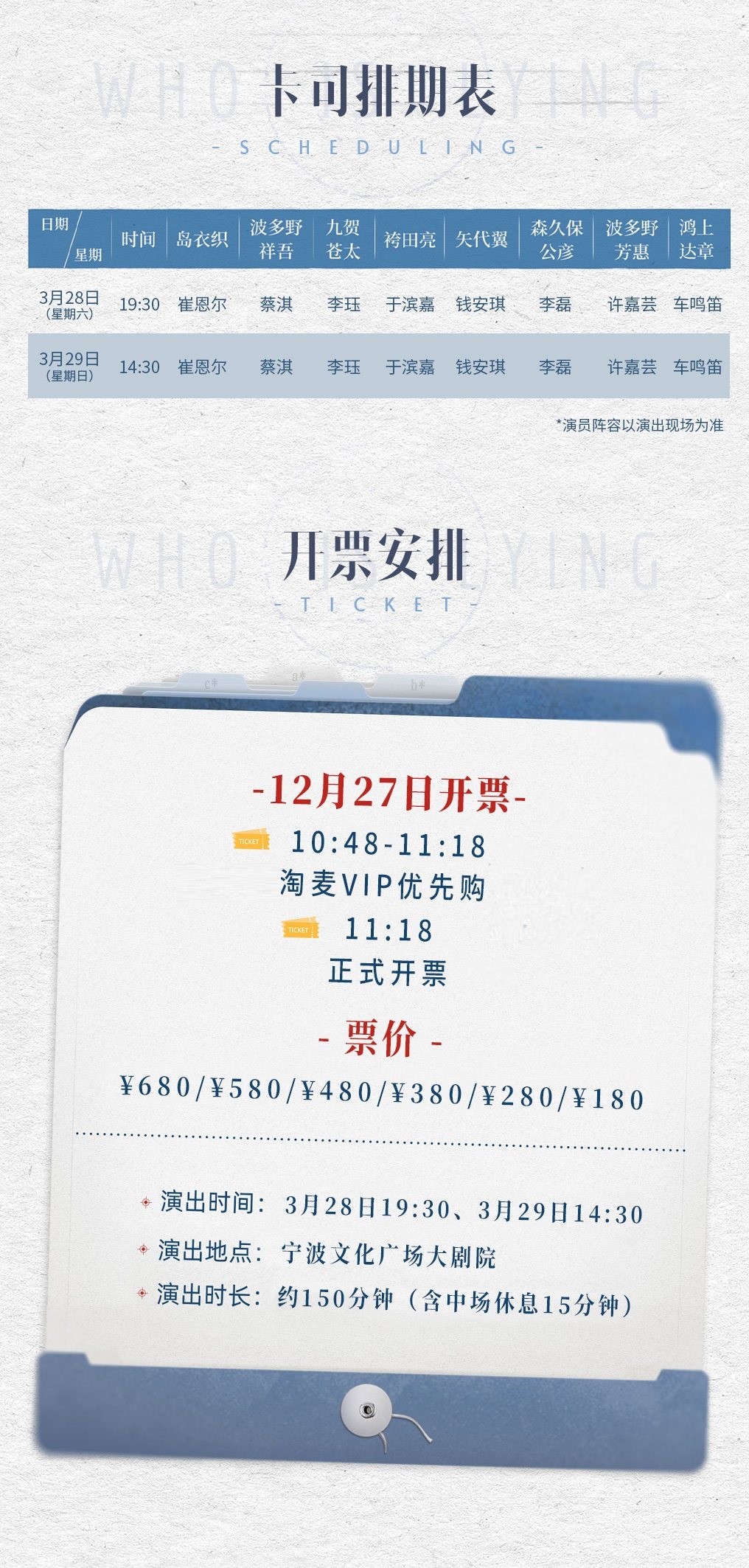 购买前请提前规划好行程,当天确保至少提前一小时到达现场,以免影响您正常观演,感谢您的理解与配合。