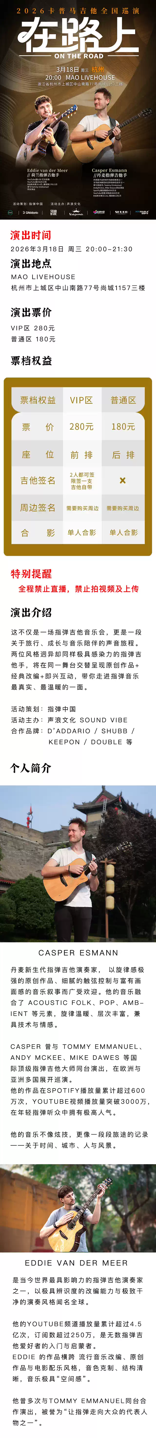【杭州】卡普马 2026《在路上》Casper &Eddie 指弹吉他音乐会 杭州站