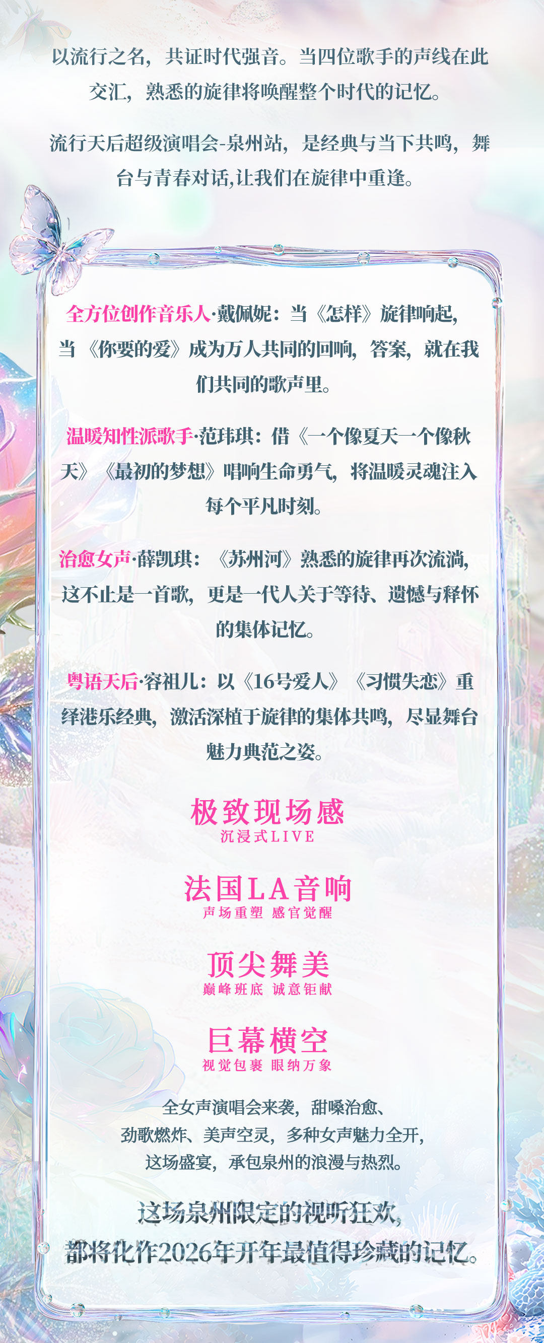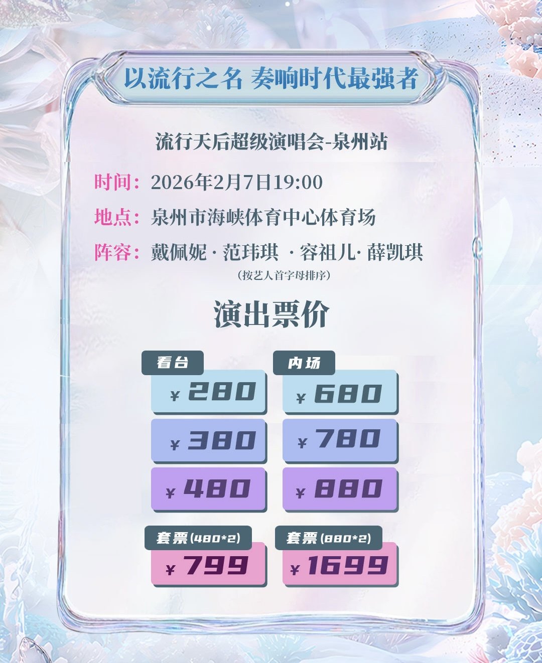 【泉州】「容祖儿/薛凯琪/戴佩妮/范玮琪」流行天后超级演唱会·泉州站