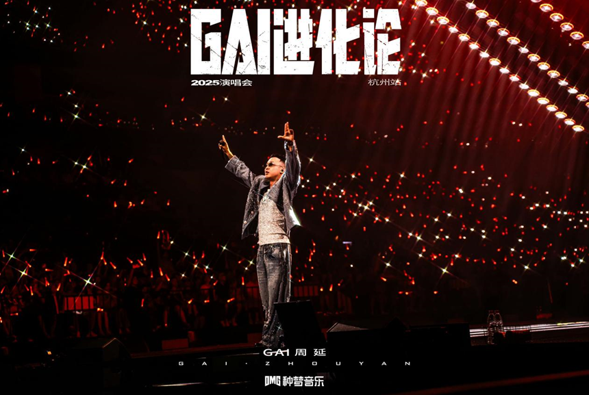 GAI的音乐现场以统治级气场、超绝感染力、强悍唱功以及极具情感张力的talking环节赢得超高口碑赞誉,被乐迷形容为“刻在DNA里的滚烫与震撼”。在开启全球征程之前,《GAI进化论》已在中国本土完成了从“开拓者”到“定义者”的史诗级进化,树立了一系列难以逾越的行业标杆。2024至2025年间,从十站万人体育馆演出场场爆满,再到成功举办中文说唱首个体育场四面台演唱会,全部门票开票秒售罄,《GAI进化论》创造了历史,中文说唱正式迈入“体育场时代”。