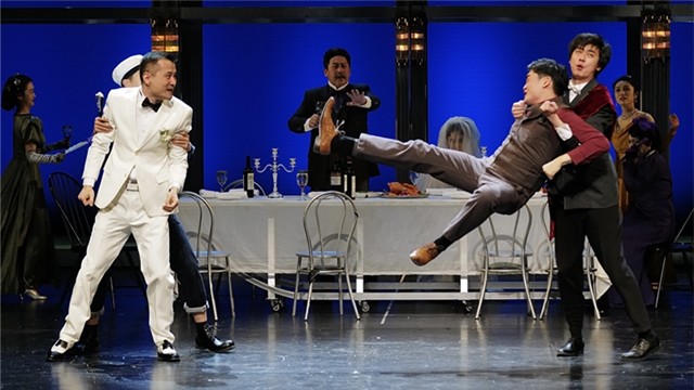 三出短剧具有轻松诙谐的共性,且带有通俗喜剧的夸张特点,彼此呼应,形成互文。同时,该剧还融合了契诃夫小说《捉弄》《套中人》《新娘》《关于爱情》中著名的人物和故事,他们穿插在剧情中,与剧中人物交流融合,形成一个契诃夫文学世界的平行宇宙,他们的声音犹如一组彼此呼应的交响,向今天的我们传达出契诃夫关于人生与爱情的智慧乐章。