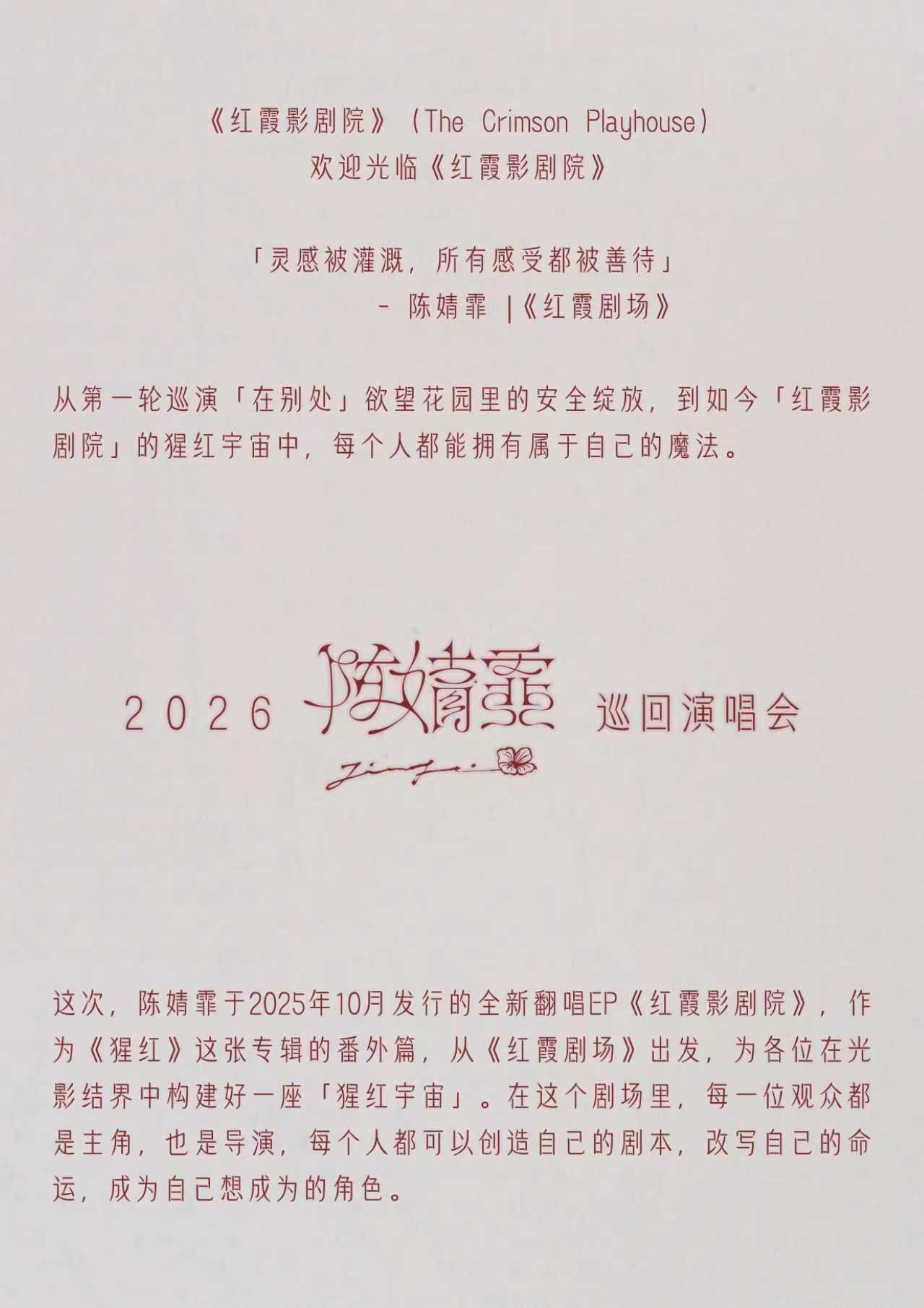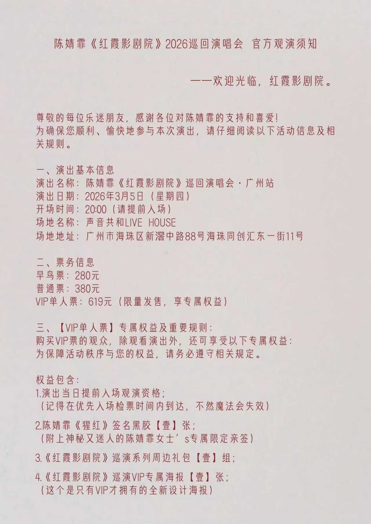 【广州】陈婧霏《红霞影剧院》巡回演唱会·广州站