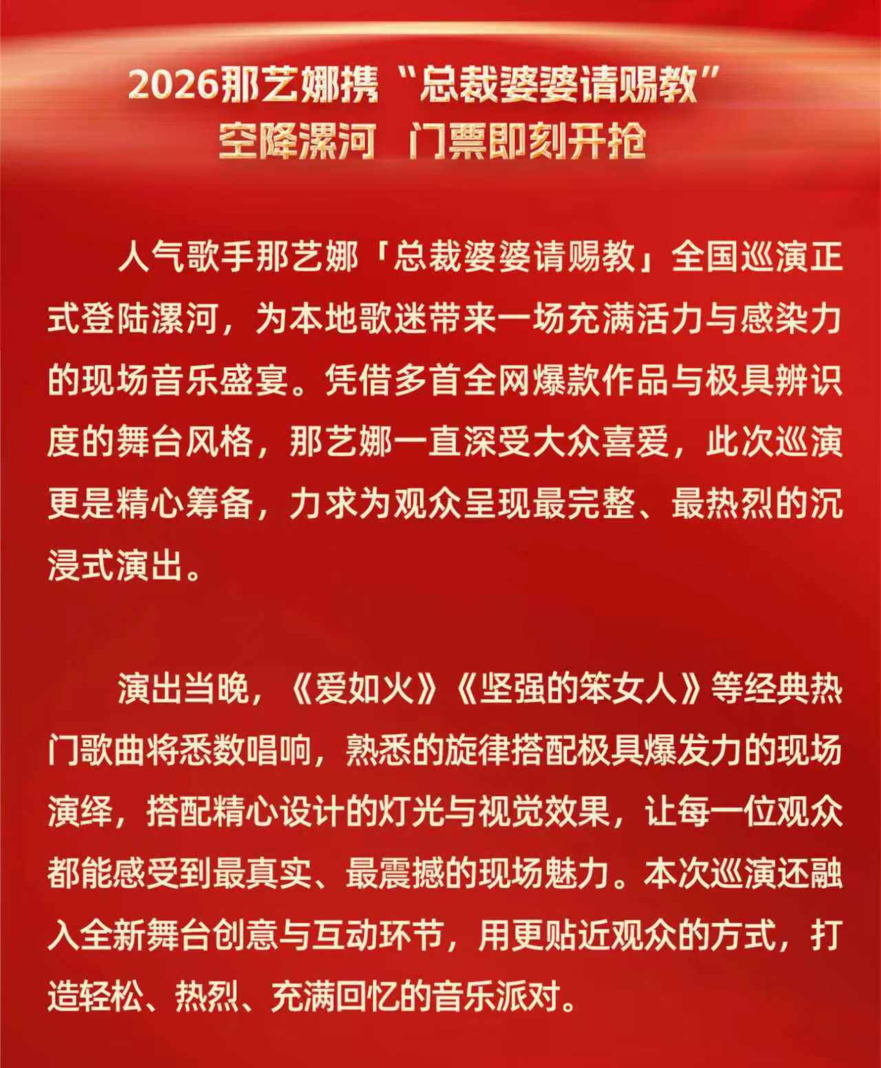 【漯河】《总裁婆婆请赐教》那艺娜巡演 漯河站