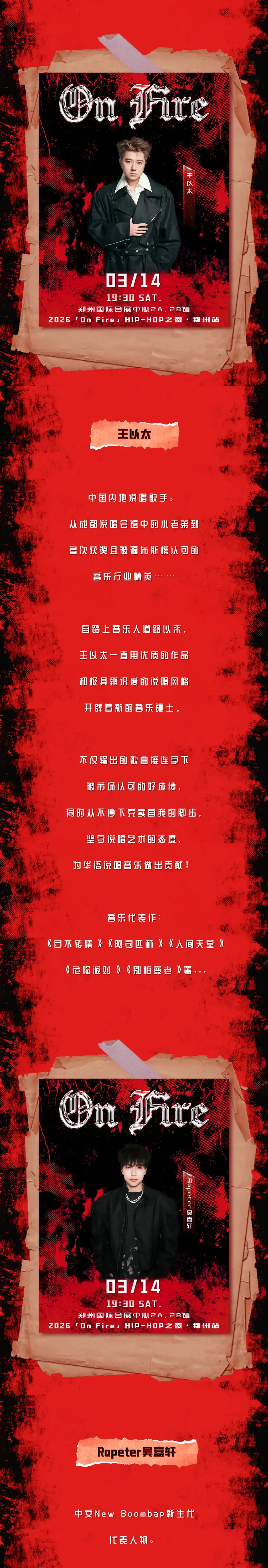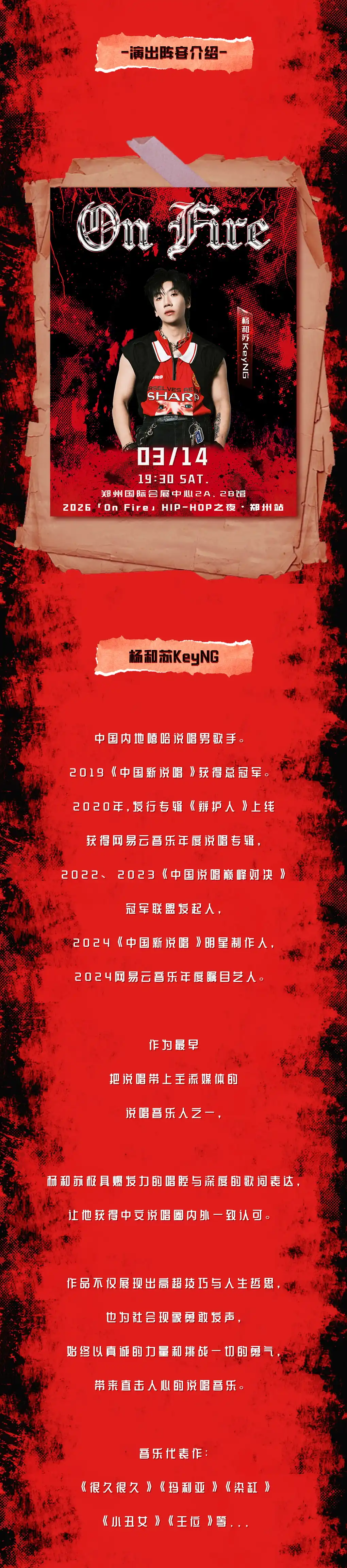 【郑州】「杨和苏KeyNG/王以太/Rapeter吴嘉轩」2026「On Fire」HIP-HOP之夜-郑州