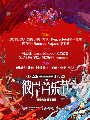 重要提示:本场音乐节分为两个主题日,7月26日-27日为永劫无间日,7月28日为倩女幽魂日。不同的IP日现场将落地相应IP的主题装置和互动活动;此外,购买不同主题日门票赠送相应IP的随票虚拟礼包,根据票型的不同分为【基础版礼包】和【升级版礼包】,并区分端游和手游权益,购票时请务必确认购买日期、票种、附赠权益等信息。门票附赠虚拟礼包介绍请参考“关于门票”相关描述。