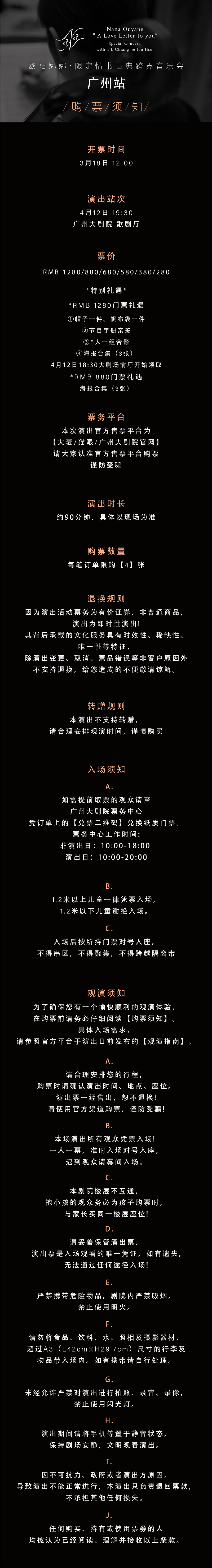 购买前请提前规划好行程,当天确保至少提前一小时到达现场,以免影响您正常观演,感谢您的理解与配合。