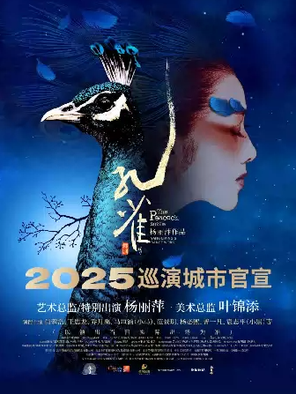 “孔雀”是著名舞蹈艺术家杨丽萍塑造的经典舞台形象,以《雀之灵》为代表的系列作品,已经达到了让观众认为“她就是孔雀,孔雀就是她”的境地。在追求艺术的道路上,杨丽萍是永无止境的,在拥有了孔雀之“形”,甚至在拥有了孔雀之“灵”之后,她依然不满足,她想讲述更加丰富、深刻的关于“孔雀”的故事。于是,2012年有了舞剧《孔雀》,一经推出,好评如潮,观者如云。转眼十年,2022版舞剧《孔雀》重装重启,全新的舞台形式,精雕细琢、精益求精的修改与调整之后,2022年全国首轮巡演12地50场,场场售罄、势如破竹,全国刮起“孔雀风”。2023年-2024年,“孔雀”先后抵达北京、广州、上海等40余座城市,奉献260余场演出,为各地观众带来不可错过的视觉、心灵的盛宴。2025年,舞剧《孔雀》将再度展翅,感受光影与舞蹈的梦幻交织,生命与爱的深刻共鸣!