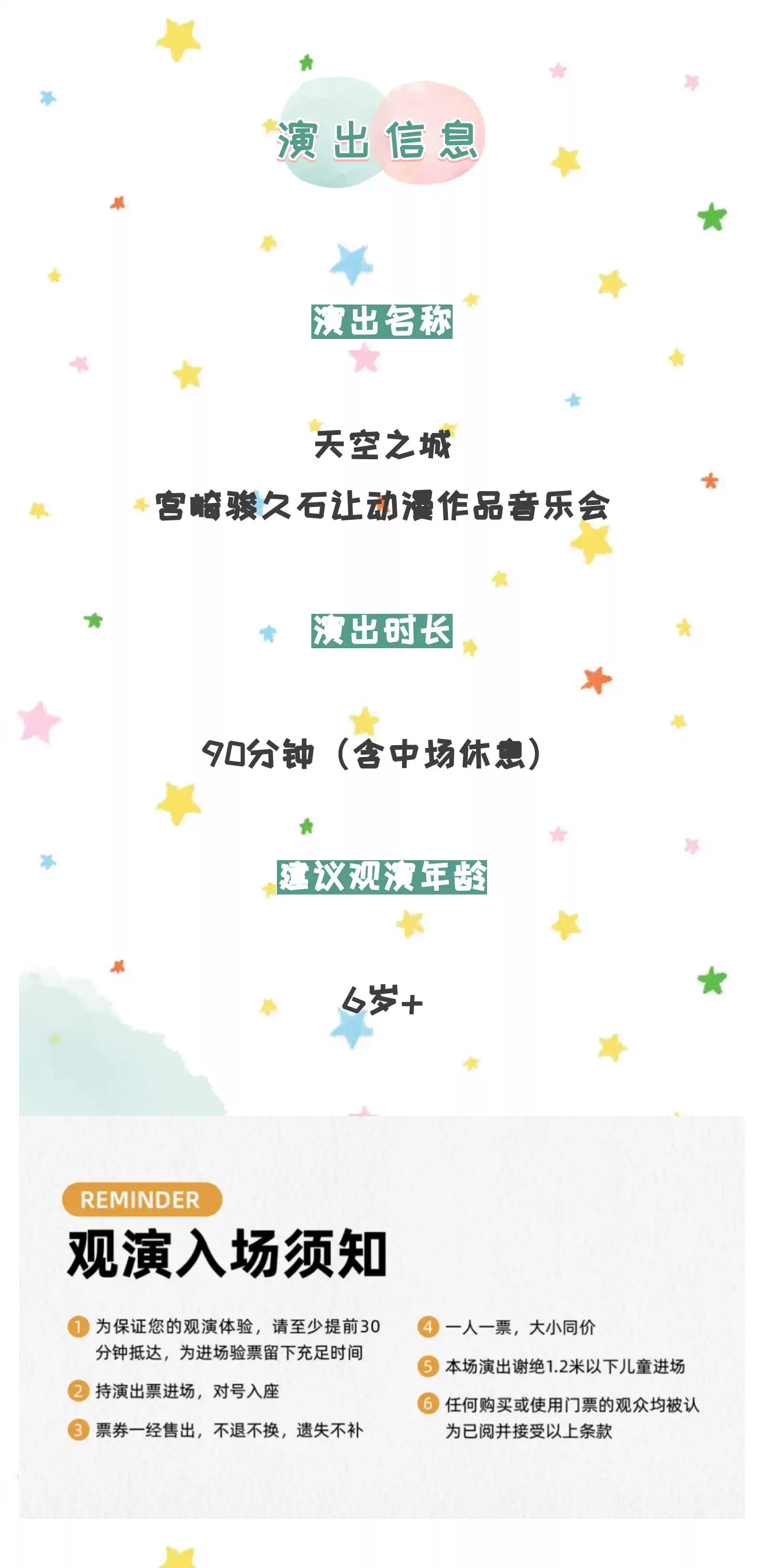 购买前请提前规划好行程,当天确保至少提前一小时到达现场,以免影响您正常观演,感谢您的理解与配合。