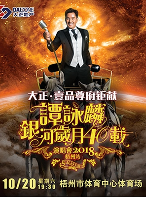 为纪念这件40年的光辉,校长从2015年一直忙到2018年,制作了一个特别企划,展开"谭咏麟银河岁月40载巡回演唱会",现在,2018谭咏麟银河岁月40载中国巡回演唱会来到梧州市体育中心体育场了!