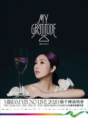 《MY Gratitude 25杨千嬅演唱会2020》举行日期为2020年12月23-26日(晚上20:15开场)、跨年场31日(晚上21:30开场)、及2021年1月1日(晚上20:15开场),暂共6场演出。