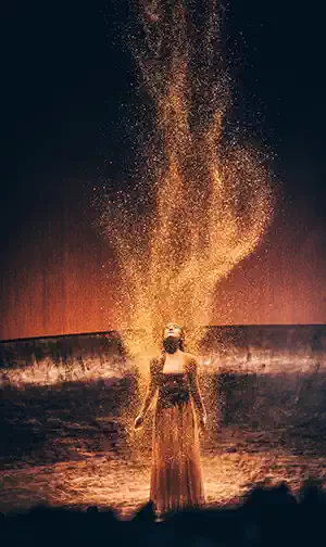 2016年,杨丽萍组建了一个国际化的顶级团队,与叶锦添、何训田等众位艺术家一起展开了对于这段生命“密码”的伟大冒险。两年之中,他们穿越幻像,历经轮回,从“无”中创造“有”,以东方释西方;以不同,求大同。
