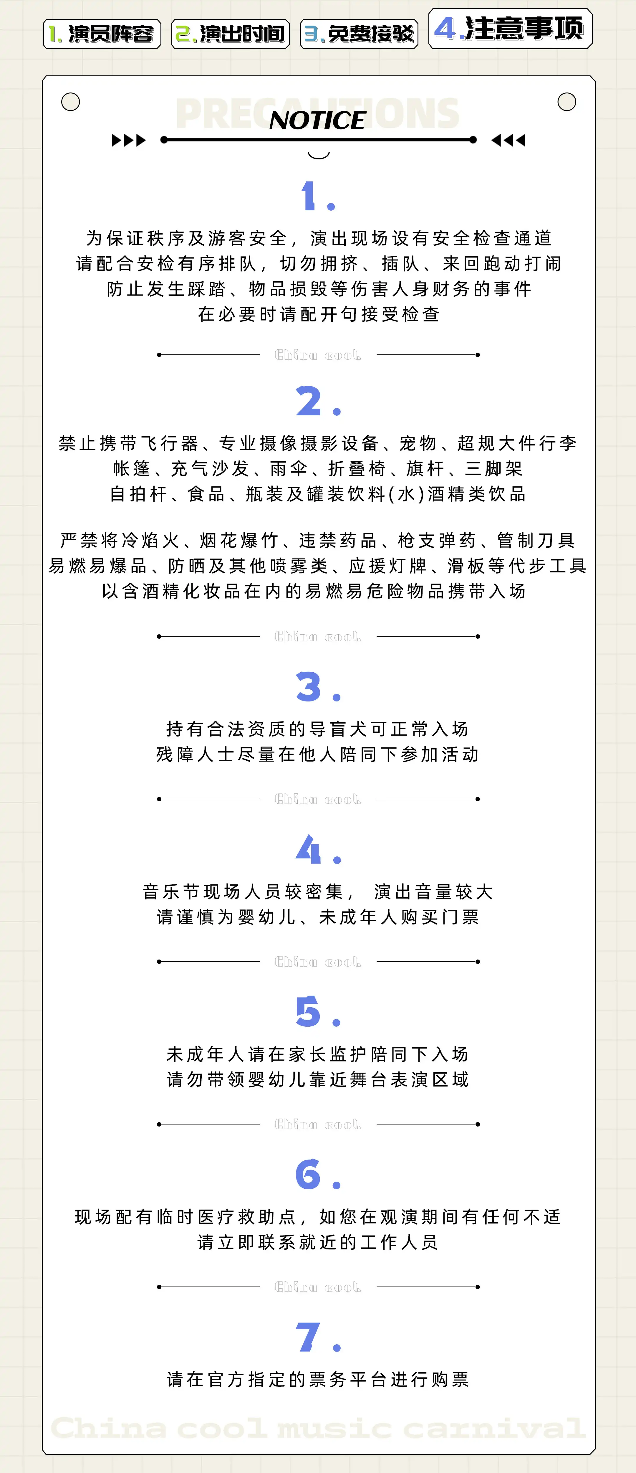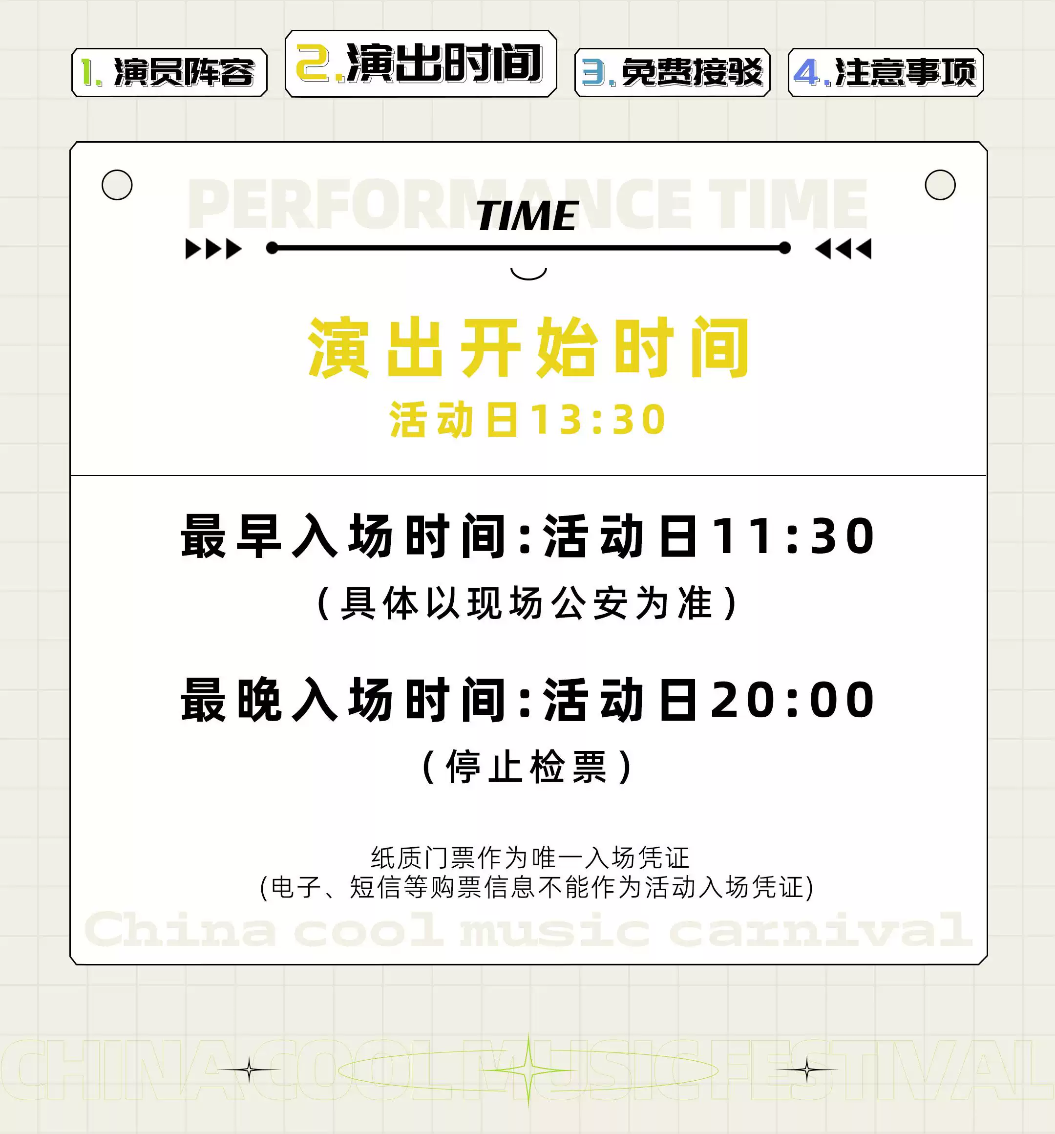 4、购买电子票的观众请先前往官方电子票兑换处换取纸质门票后入场。